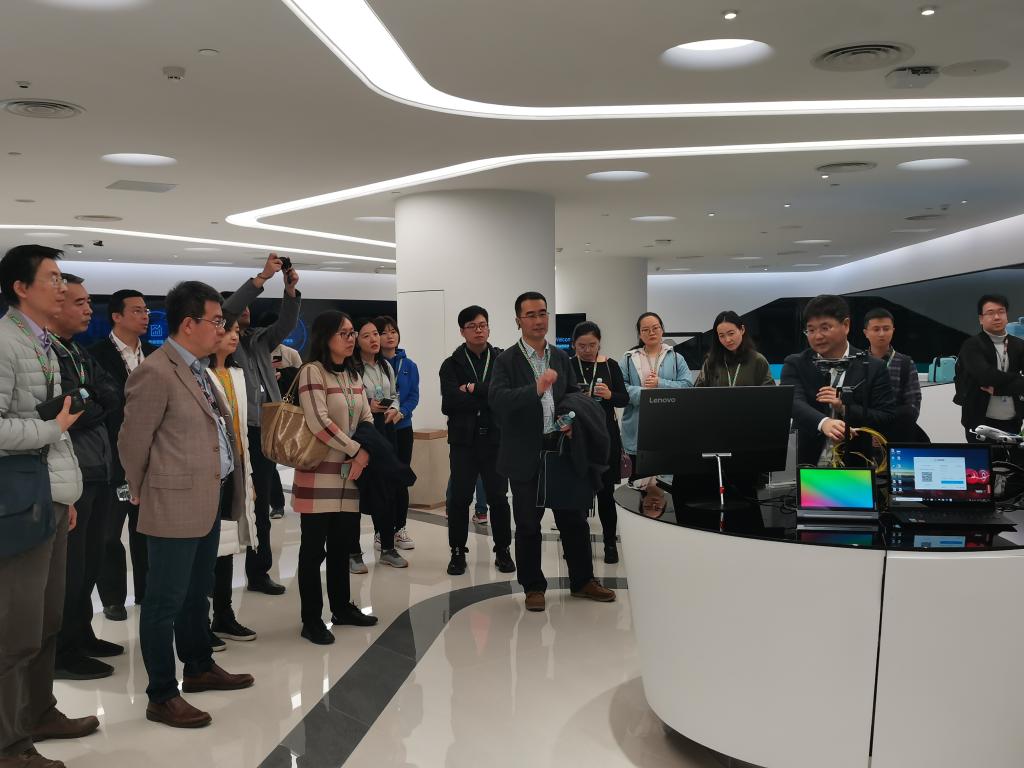 11月22日上午,学院一行人来到联想公司西区总部,参观公司未来实验中心和科技中心。在创新产品的展示区,展示中心工作人员介绍了目前联想研发的智能穿戴设备、AI眼镜、最新的PC产品、智能家居、医疗行业的解决方案、制造行业解决方案等等。同时,了解联想集团的发展历程以及其全球化的市场竞争力。下午,技术人员汇报了联想公司在人工智能领域的探索与发展机会。