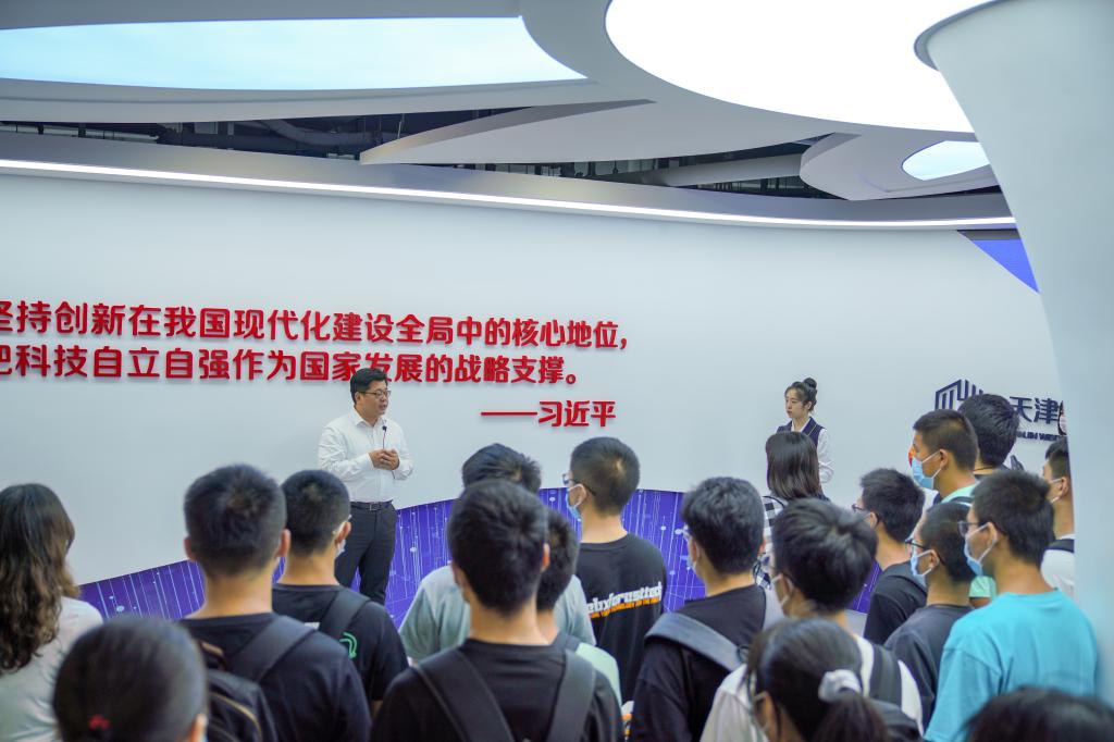 在海棠众创大街,新生们首先参观了“创新发展聚集区展厅”。津南区采取校企合作的方式来充分挖掘海河教育园区的“智库”优势,并引进阿里云、华为等科技企业打造创新产业孵化平台,促进园区师生创新创业,这充分展现了“创新驱动、创业引领、创造强区”的理念。海棠众创大街已入驻多家人工智能领域的科技企业,这为我院师生提供了很好的创新创业交流发展平台,新生们对此兴致盎然。