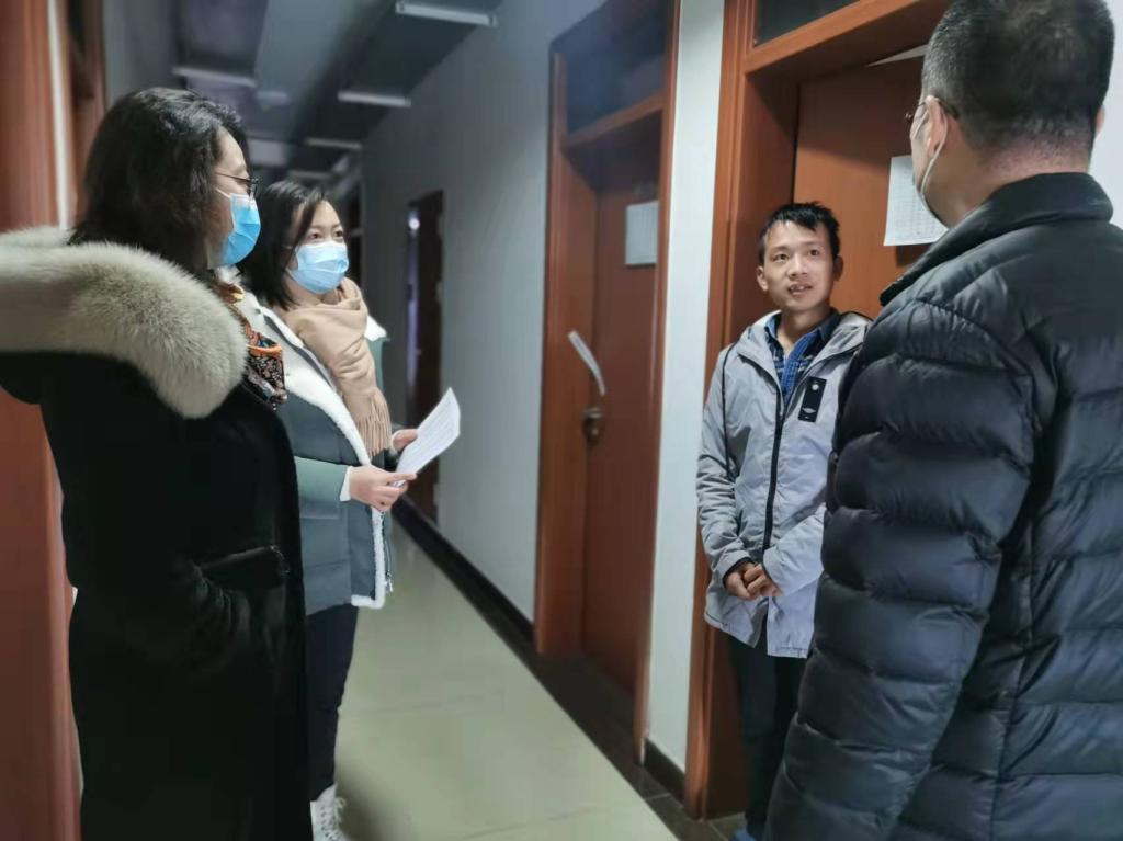 当天上午,学院党委书记张波,院长赵新,党委副书记、副院长韩玲及留校值班辅导员吴亚坤,一同前往留校学生宿舍,看望了学院部分留校本科生和研究生,通过查看学生宿舍卫生、防疫物资储备等情况,叮嘱学生在校期间要严格遵守学校的防疫要求,做好自身的防护,同时提醒学生在校期间要做好寒假规划,规律作息,合理安排学习和生活。