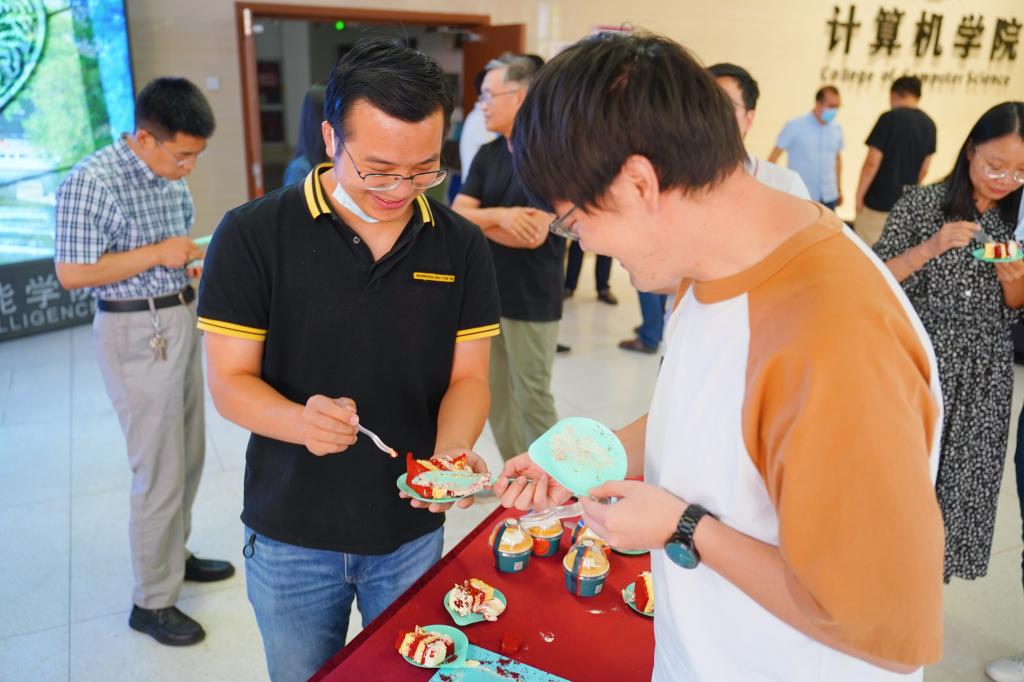 教师们合影后,赵新院长亲自为大家分享蛋糕,将活动气氛推向高潮,大家享用蛋糕的同时,亲切交流,现场气氛融洽,笑声不断,纷纷拍照留念。老师们在欢度节日的同时,更明确了立德树人、发奋进取的治学态度。
