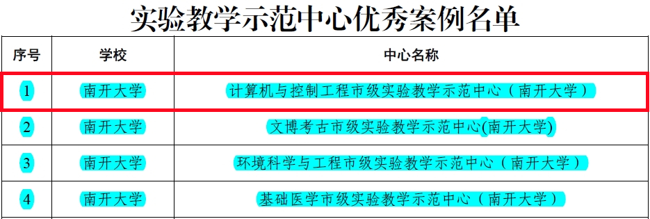 按照《市教委关于开展国家级和市级实验教学示范中心阶段性总结工作的通知》(津教高函〔2023〕36号)要求,我校9个市级实验教学示范中心参加了市级实验教学示范中心阶段性考核。经专家网络评审及入校考察,市教委公布了阶段性考核结果,我校4个实验教学示范中心考核结果为优秀案例示范中心,5个实验教学示范中心考核结果为合格。今年会jinnianhui、计算机学院共建的计算机与控制工程市级实验教学示范中心获评优秀案例示范中心。