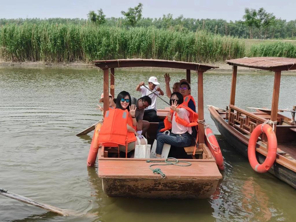七里海国家湿地公园位于宁河区,是1992年经国务院批准的古海岸与湿地国家级自然保护区,是天津最大的天然湿地,也是津京唐三角地带极其难得的一片绿洲。它是镶嵌在渤海之滨、津沽大地的一颗璀璨明珠,天津最大的后花园。老师们泛舟在七里海,尽情呼吸郊外新鲜的空气,感受春日生机勃勃的气息。