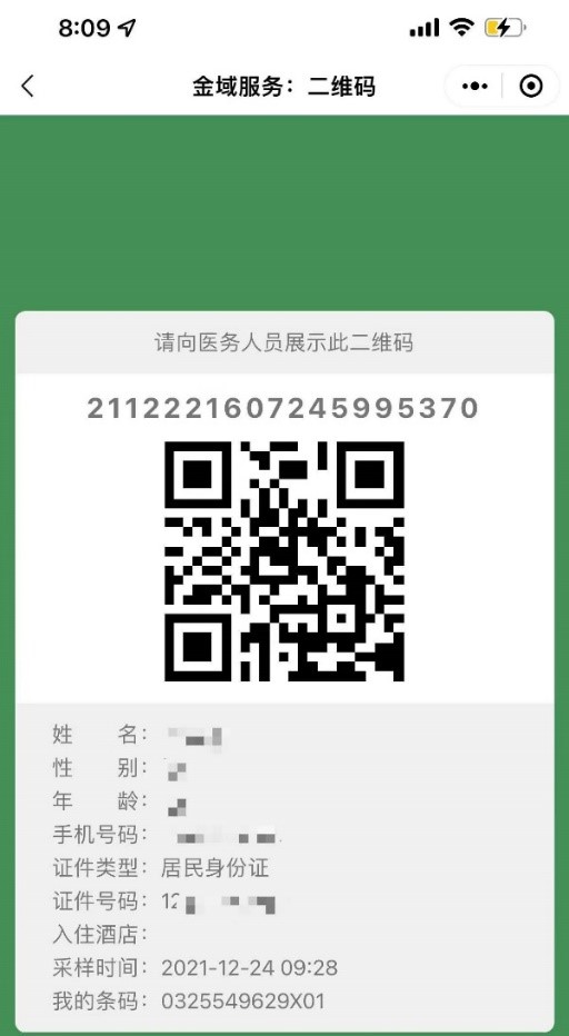 3.信息录入完成后,会生成个人信息二维码,可截屏保存,也可现场扫描二维码生成并出示。