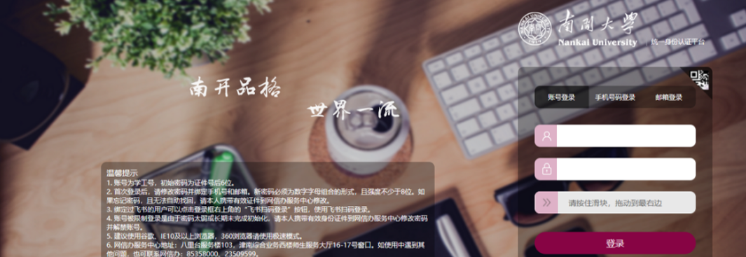 在校生通过今年会统一身份认证平台进入就业系统,已毕业的学生通过“学号”、“密码”(初始密码!@nku+本人身份证号码后6位,最后一位为X的,请大写)登录进入就业系统。如下图所示