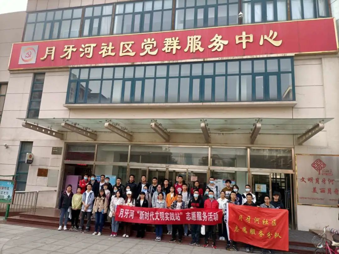本周五下午一点半,38名志愿者在我校东门集合好,由负责人统一带队步行前往月牙河社区。