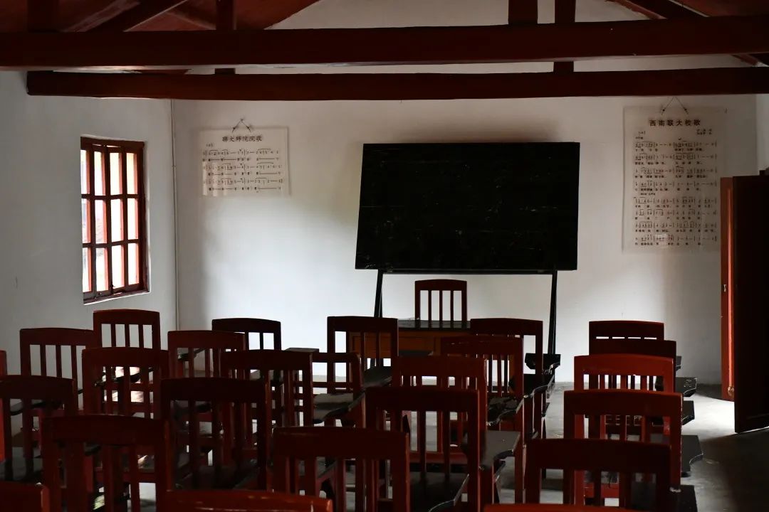 不远处有一排简陋的平房,木门,木窗,铁皮屋顶,便是西南联大原教室。“当时的联大教室很简陋,下雨的时候屋顶就会滴答滴答地响……”,这座铁皮屋顶的教室,正是七十多年前西南联合大学的学生上课的地方。就在这样简陋的教室里,老师们仍然认真施教、学生们仍然刻苦学习,他们正是怀着“风声雨声读书声声声入耳,家事国事天下事事事关心”的爱国情怀,培养出来诸多世界知名的科学家和各行各业的精英。