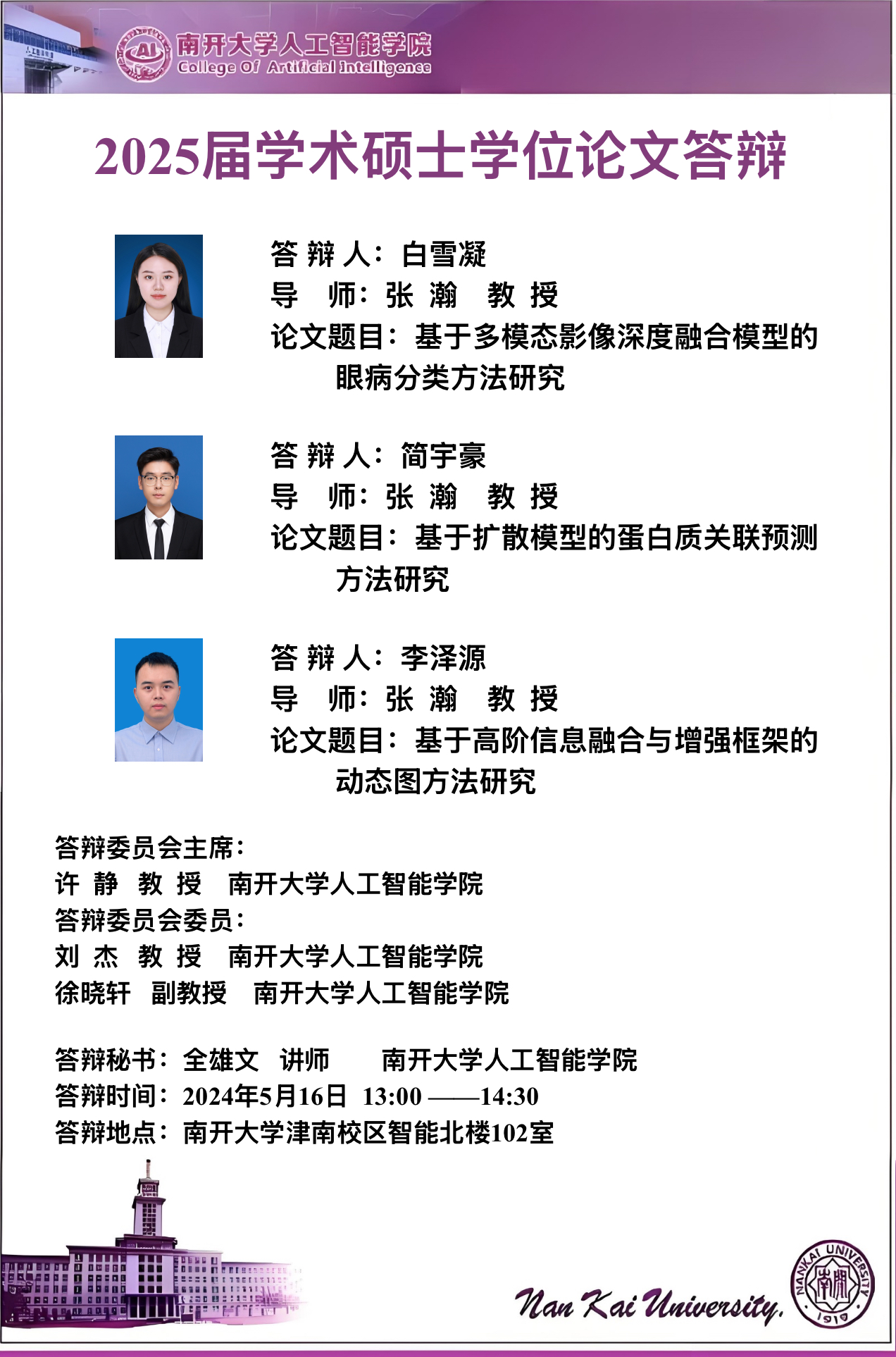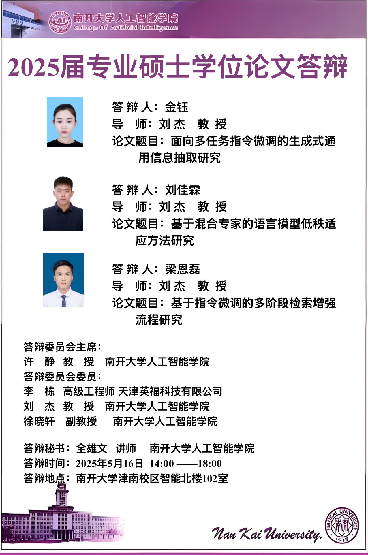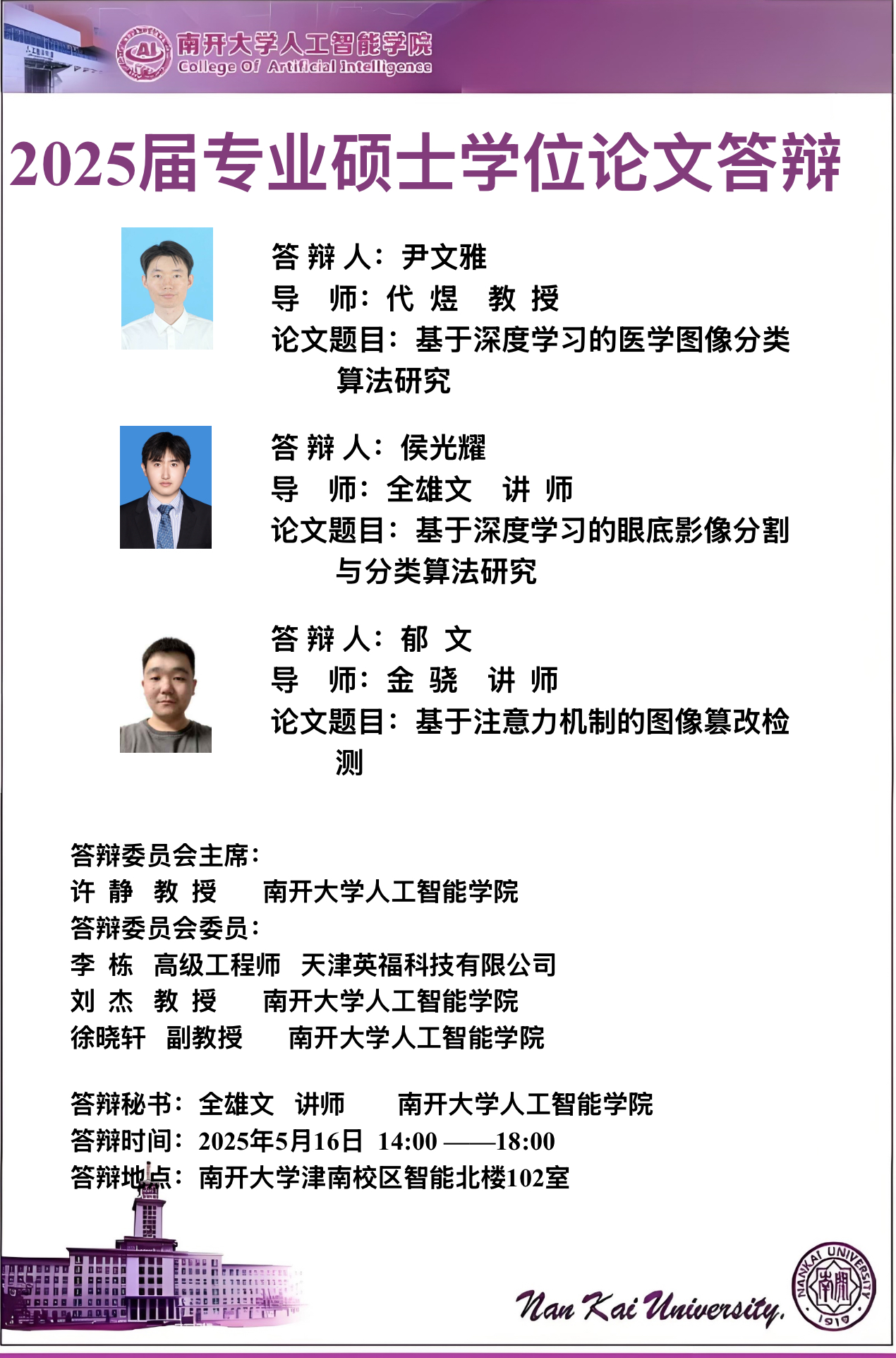 【答辩】今年会jinnianhui2025届夏季毕业答辩公告----机器智能研究所、智能工程系
