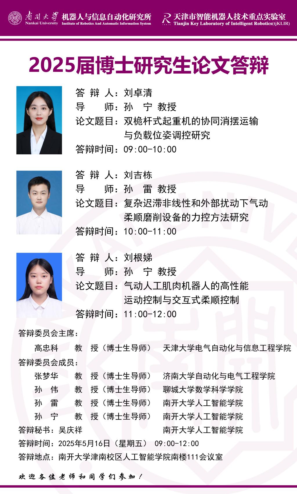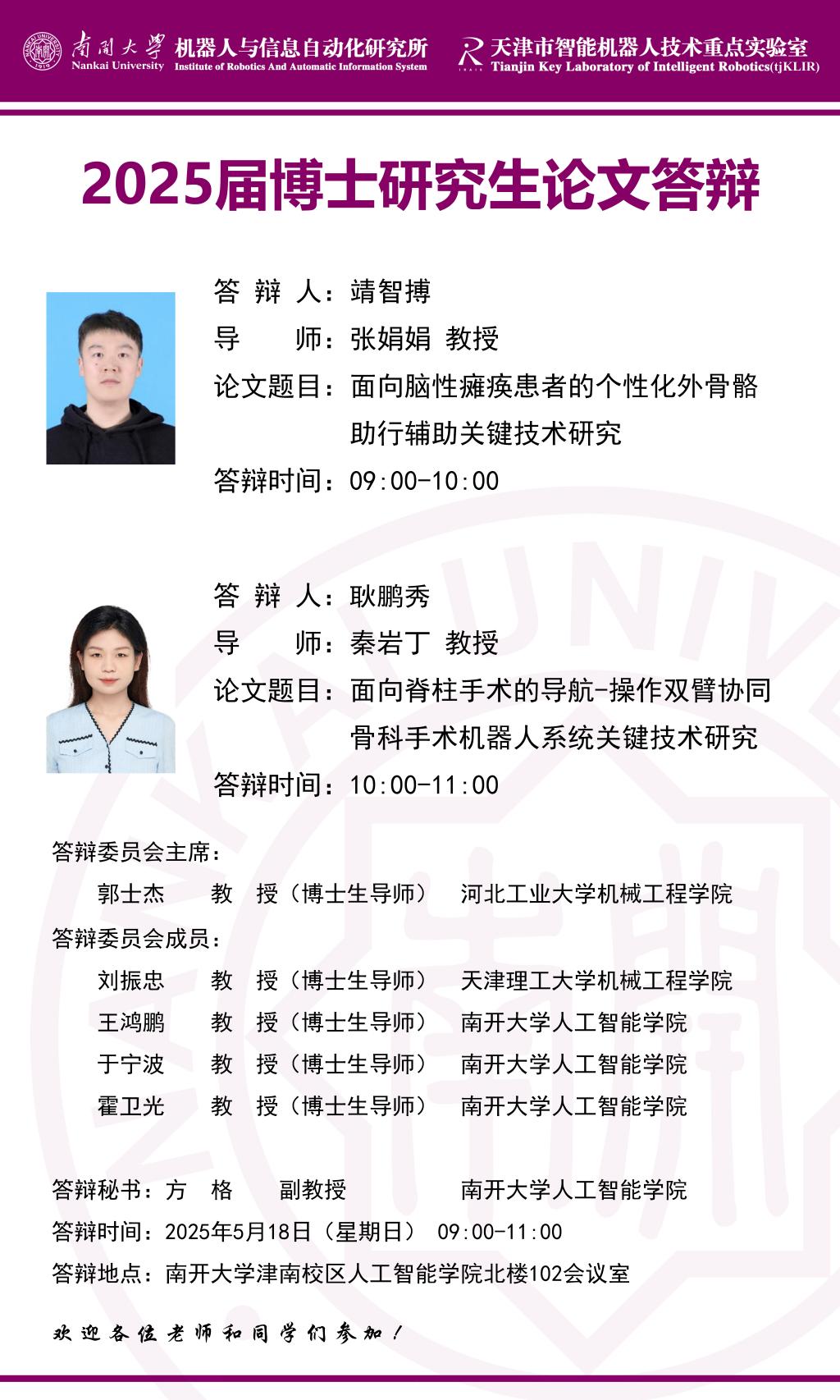 【答辩】今年会jinnianhui2025届夏季毕业答辩公告----机器人与信息自动化研究所(博士)