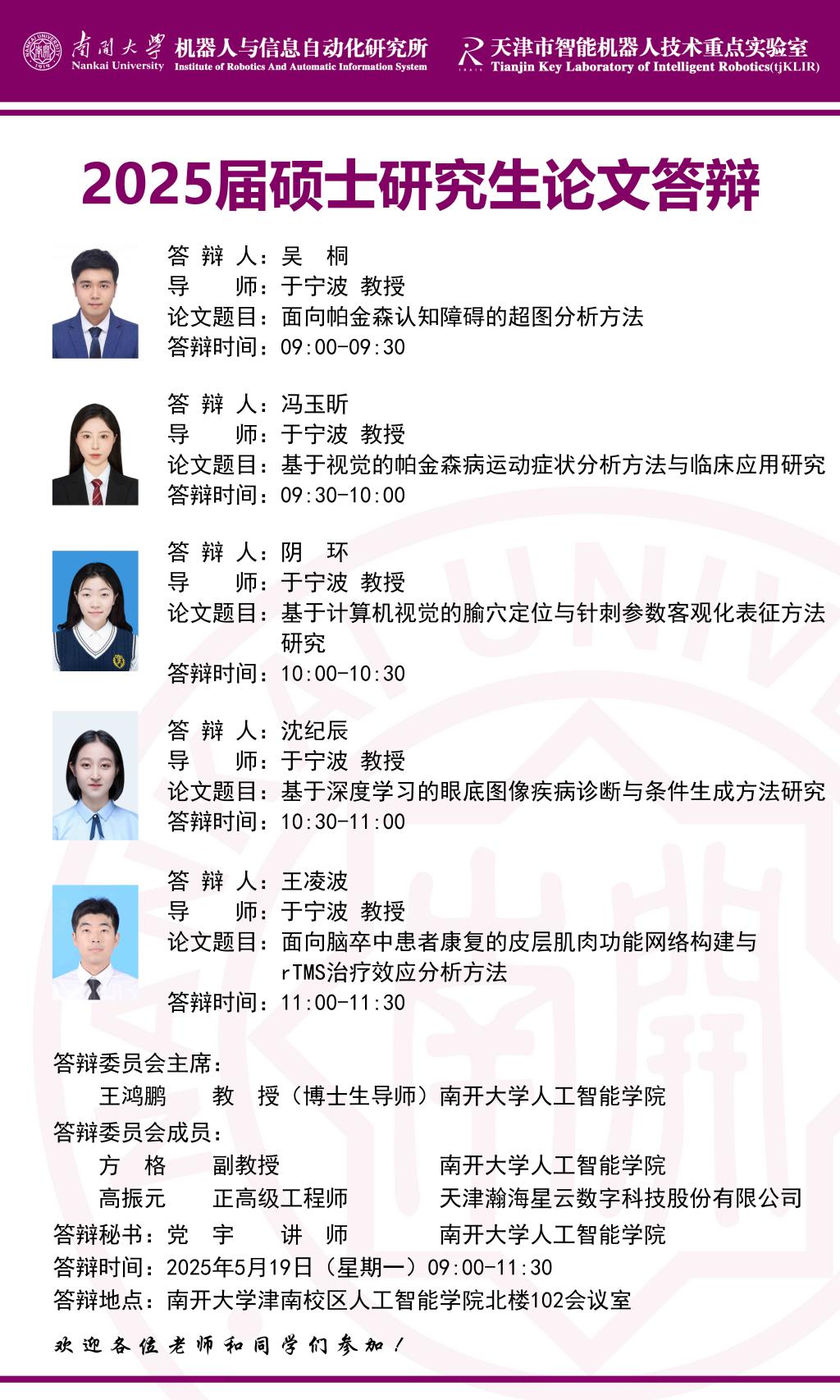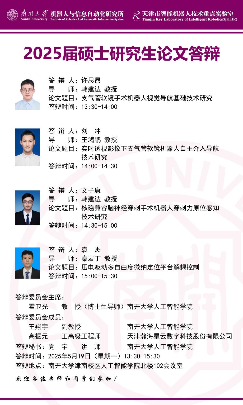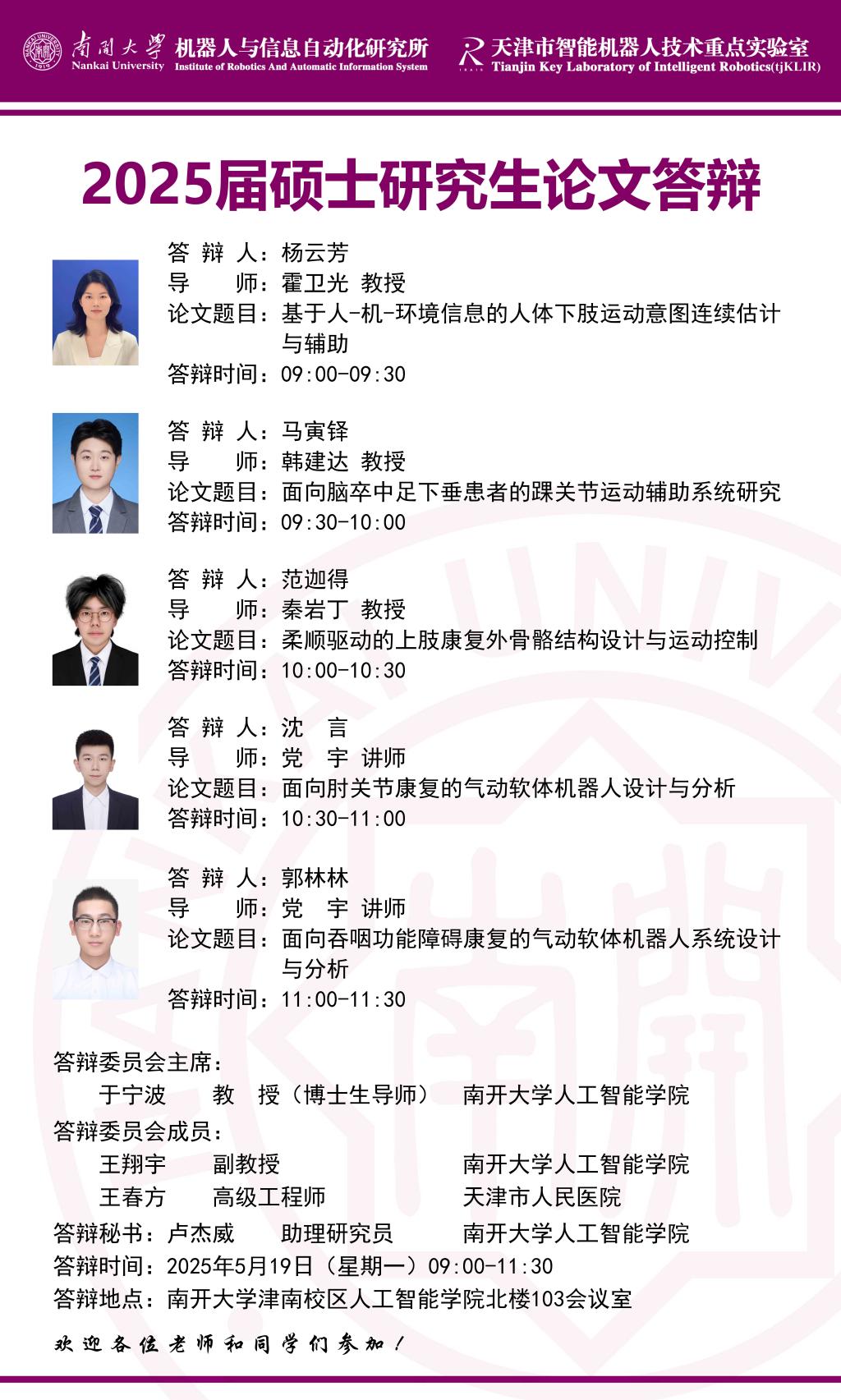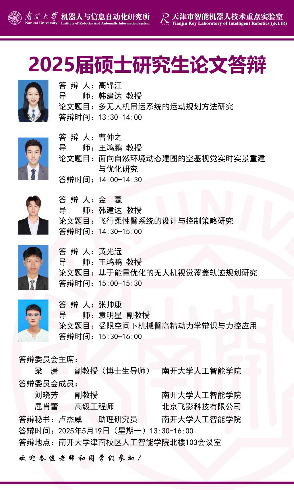 【答辩】今年会jinnianhui2025届夏季毕业答辩公告----机器人与信息自动化研究所(学硕+专硕)