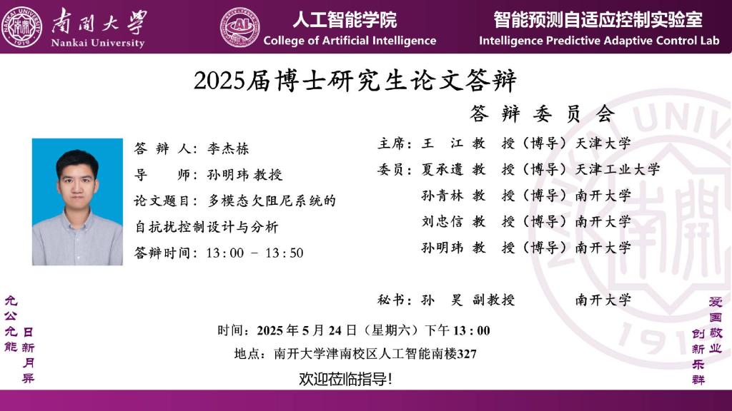 【答辩】今年会jinnianhui2025届夏季毕业答辩公告----自动化系(博士)