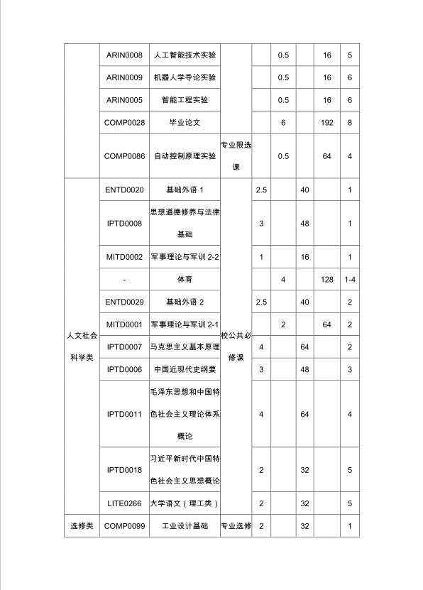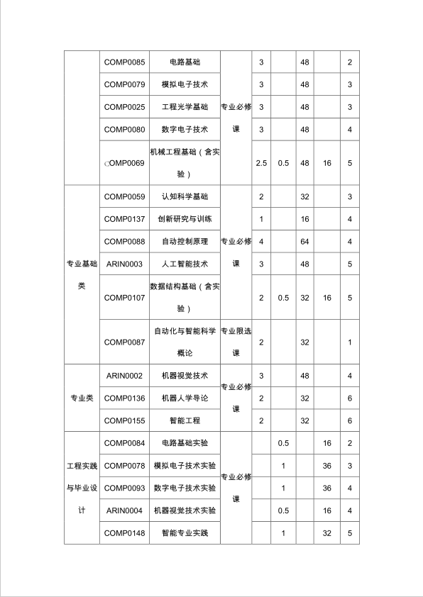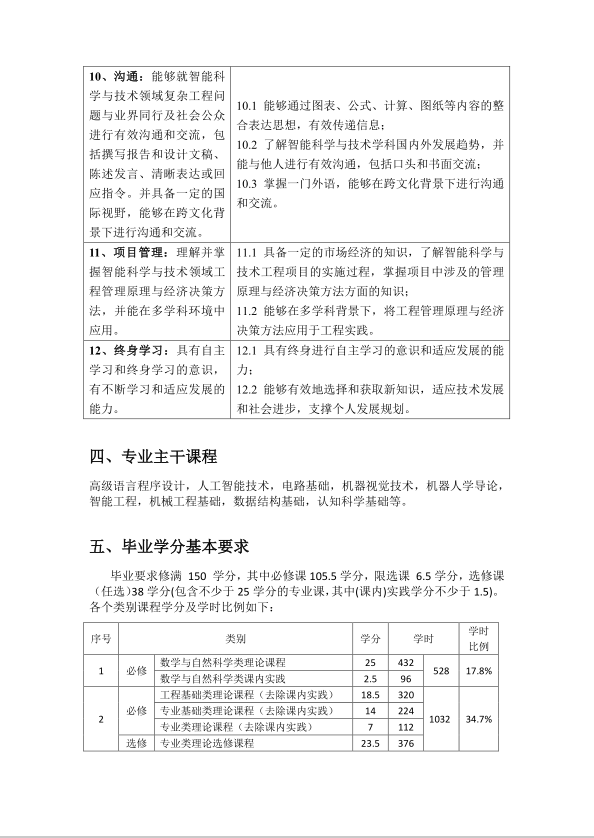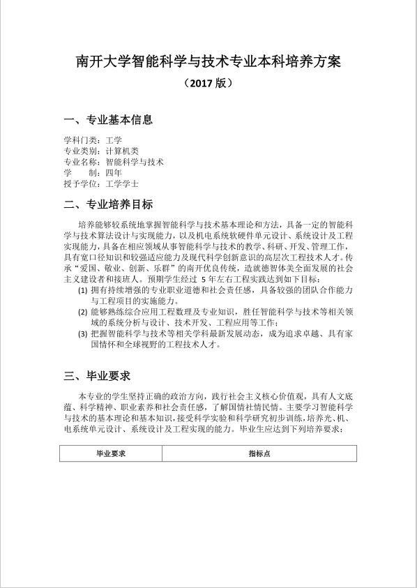 今年会智能科学与技术专业本科培养方案 (2017版)